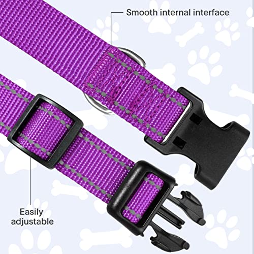 Specification: FunTags Reflective Dog Collar, Sturdy Nylon Collars for Small Girl and Boy Dogs, Adjustable Dog Collar with Quick Release Buckle, Purple