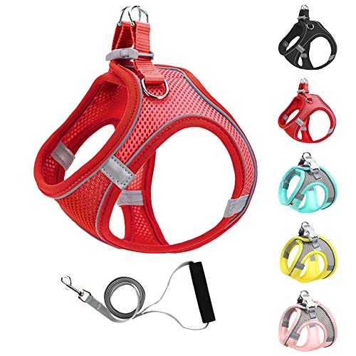 Specification: Mitili Dog Harness with Leash Set, No Pull Dogs Vest Harnesses Step-in Air Reflective Adjustable Breathable Mesh Cat Harness fit Small Medium Puppy Pet Cats (L(Chest:16-20″), Red)