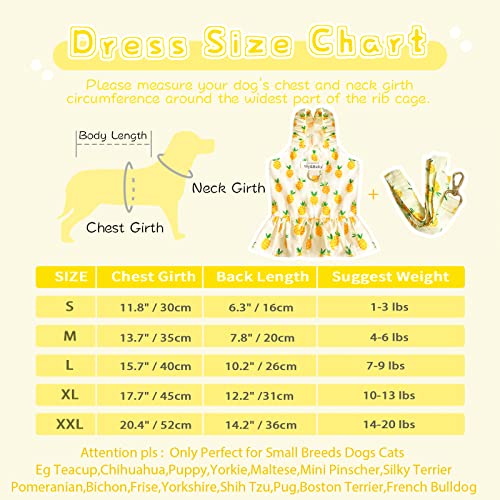 Specification: PETPUBGNZS Small Dog Dress Harness and Leash Set Cute Princess Birthday Dog Dresses Soft Fruit Print Puppy Dresses Girl Dog Clothes for Small Dogs Cats Chihuahua Yorkie Shih Tzu (Yellow Pineapple,L)